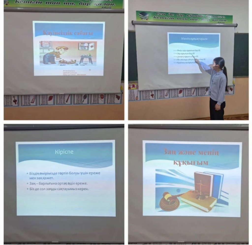 Мектебімізде "Заң және менің құқығым" атты біріңғай интерактивті сынып сағаты өткізілді