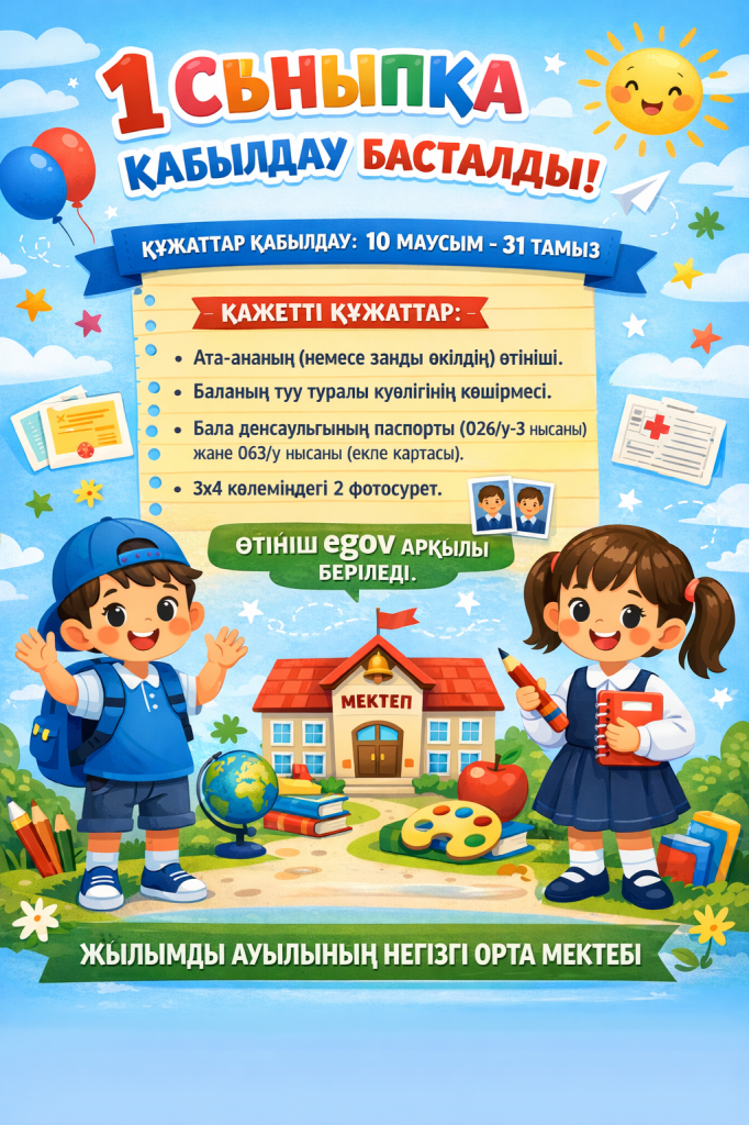 1-сыныпқа 6 жасқа толған балалар міндетті түрде қабылданады.